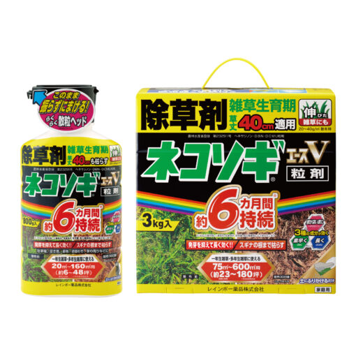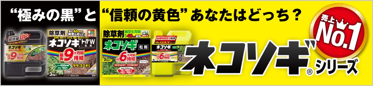 土壌処理型/茎葉処理型の除草剤は、粒剤の持続性(長期間雑草を抑える)+液剤の速効性(すばやく枯らす)2つの性能を持った薬剤です。土壌にも植物の葉や茎にも作用し、すばやく雑草を枯らし長期間雑草の発生を抑えることができます。